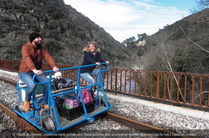 Le public peut pédaler sur un tronçon de 6,2 km de voie ferrée, entre les gares de Thoiras et Générargues. Le vélo-rail fonctionne sur la voie de chemin de fer, en pleine nature, extirpé de la circulation routière.